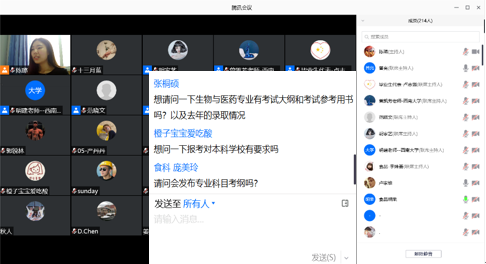 招生宣传工作的顺利进行,学院成立招生宣传工作小组,精心策划、综合运用新技术和新手段,带来了一场充实而精彩的网络云端宣讲会,也是网络时代推进招生宣传工作一种新的思路。宣讲会上,许多有意向报考的同学都积极提问和询问老师的联系方式,与老师增进了联系。