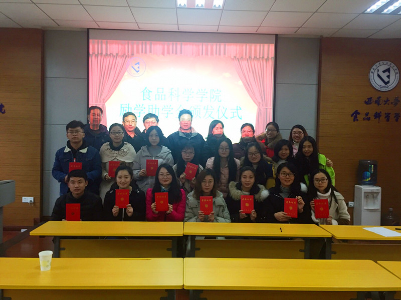 走出去的一员,他不愿意透漏自己的姓名,但向我提出了四字要求——‘需要、值得’,希望我也没有辜负他的要求”。同时,丁老师也向在场所有学子提出一点期待,期望当有能力帮助他人的时候,能够尽到一份绵薄之力。接下来,学生代表石芳同学发言,她首先向各位领导和校友师兄表达了谢意,然后表示创新和自主学习是她站在颁奖台上的基石。接着,老师们向获得助学金的15位同学颁发证书,并合影留念。最后,全体人员合唱鉴黄师