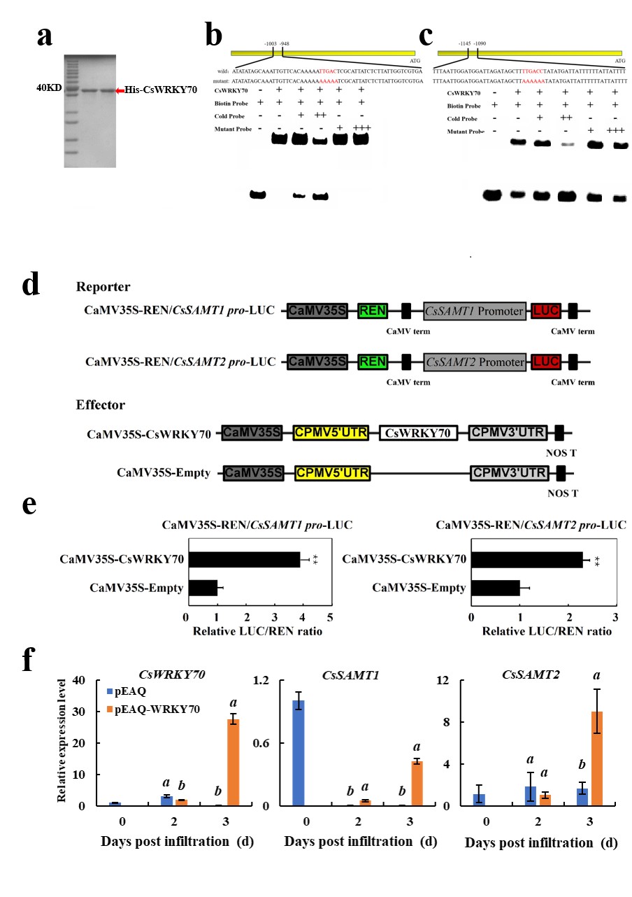 1 CsWRKY70特异性结合CsSAMT启动子并激活其表达