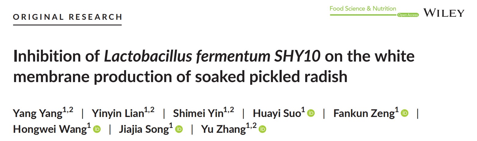 索化夷教授和张玉副教授课题组在泡菜品质控制方面取得了系列研究进展,相关成果发表在Food Chemistry、Food Science & Nutrition等国际期刊。