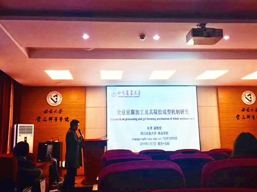 2019年1月7日,四川农业大学的张清副教授应邀在鉴黄师 39教215报告厅作题为“全豆豆腐加工及其凝胶成型机制研究”的专题报告。本次报告由鉴黄师 副院长张宇昊教授主持,学院百余名师生参会。