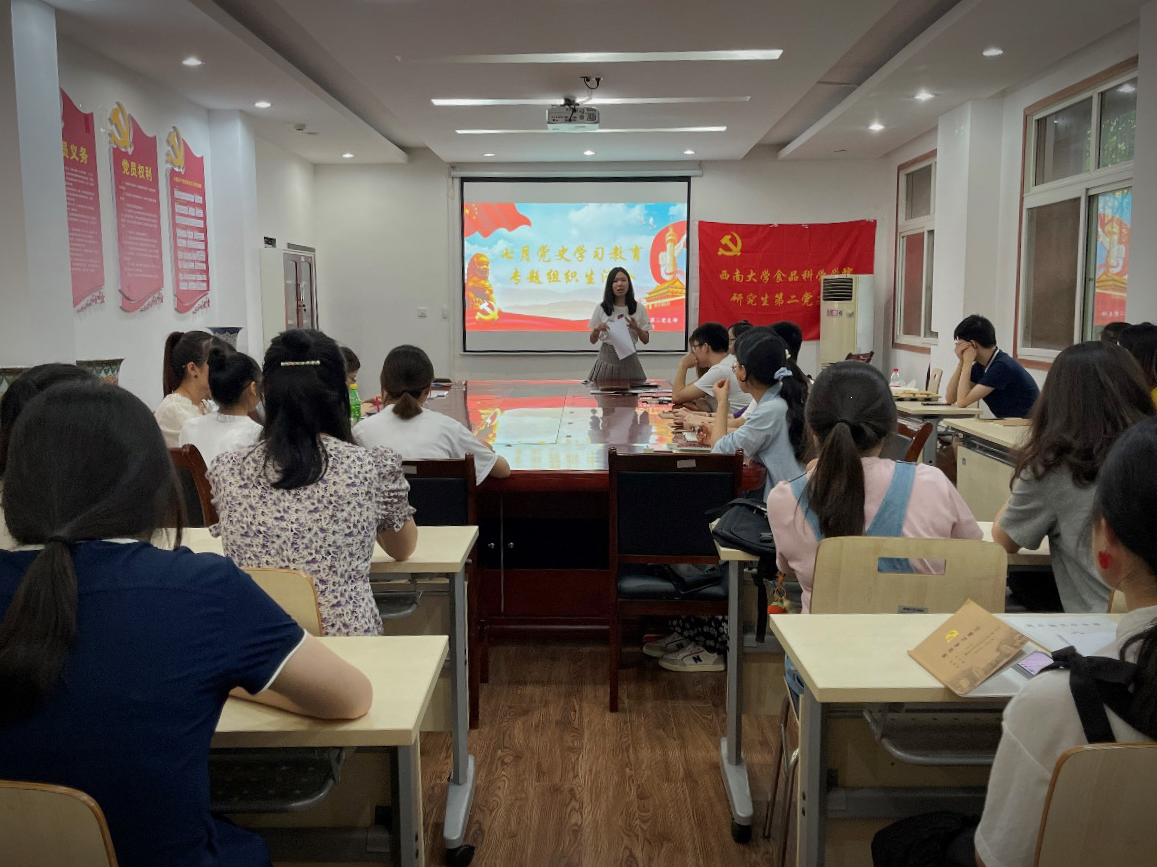 为庆祝中国共产党成立一百周年,深入推进“我为师生办实事”,加强党史知识学习,2021年7月9日研究生第二党支部开展了党史学习教育专题活动。本次活动由党支部书记陈璐主持,支部全体党员和积极分子共同参与。