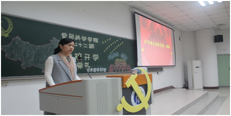 开学典礼由学院党委副书记刘秋艳主持,在庄严的国歌声中正式拉开帷幕。首先,学院党委书记周大明上台致辞。周书记阐述了开设入党积极分子培训的目的和意义,给同学们提出了三条殷切期望:第一,要端正入党动机,奠定思想入党的基础;第二,要注重理论联系实际,学以致用;第三,要端正学习态度,保证学习效果。接着,学生代表吴训忠上台发言,他代表全体学员郑重宣誓,严格要求自己,树立正确的入党动机,做一名优秀的入党积极分子,争取早日成为合格的共产党员。然后,班主任周芳详细讲解党课注意事项。最后,开学典礼在庄严肃穆的国际歌中圆满结束。