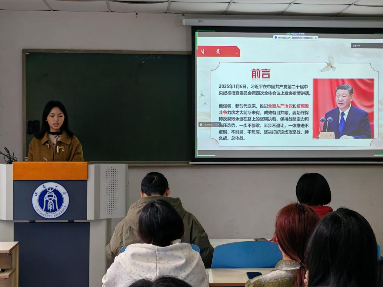 会上,吴玉萍同志领学《习近平总书记在二十届中央纪委四次全会上的重要讲话精神》,党员同志围绕学习内容开展讨论。随后,支部书记方令同志代表党支部委员会报告2024年度工作情况,并坦诚指出了支部工作中存在的不足,提出下一步整改措施。党员根据工作报告,对支部工作进行评议,提出多条建设性意见。随后,与会党员同志以党小组的形式开展批评与自我批评,党员在发言中以问题为导向,深刻剖析症结,做到了直面问题不回避、深挖根源不遮掩。批评与自我批评结束后,支部认真开展民主评议党员工作。邓丽莉同志充分肯定了党支部工作,并就党支部日常工作和组织生活会进行了点评。她强调支部同志应主动学习、调整心态、杜绝不良风气。