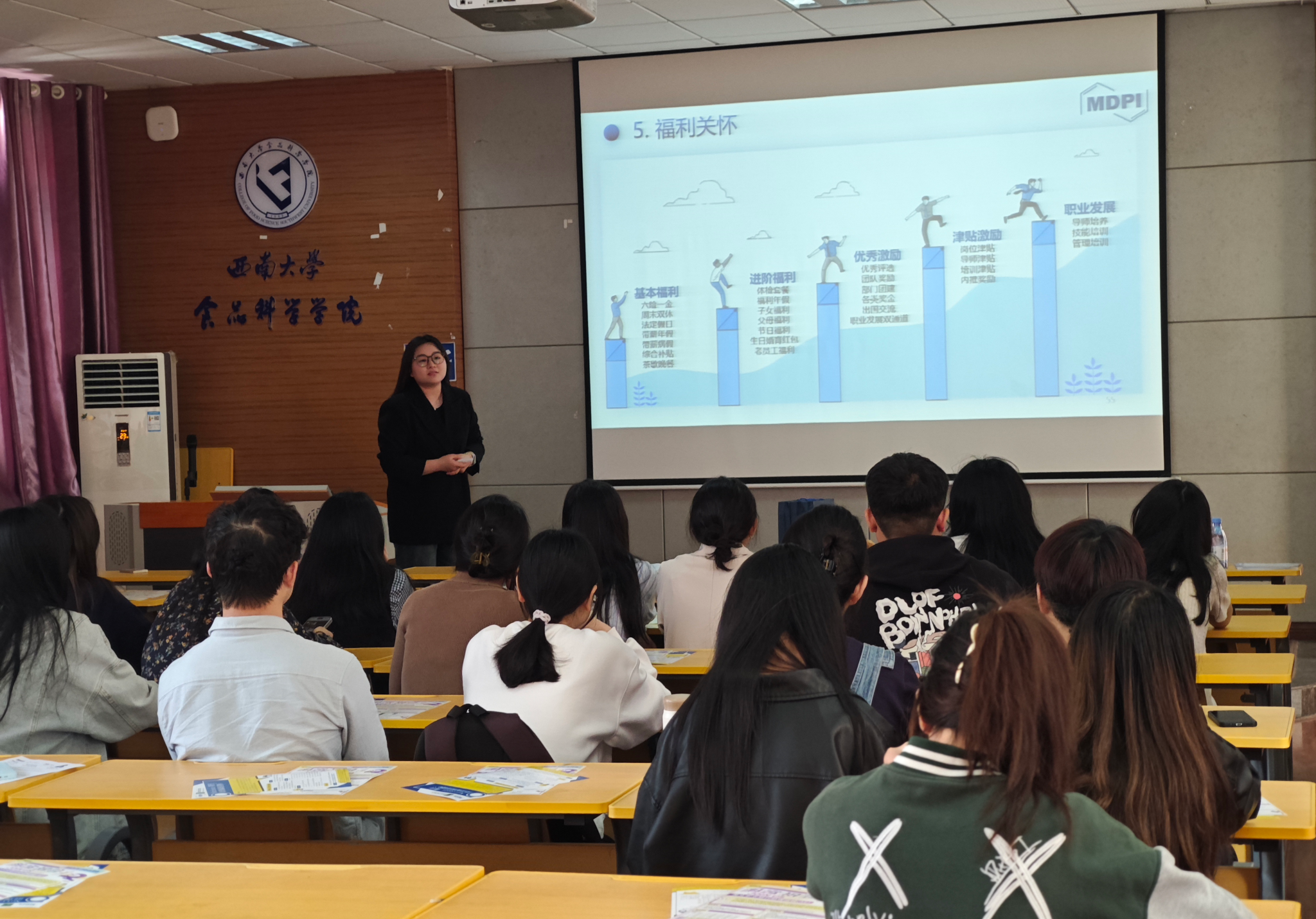 主办,院研究生会承办的“职海扬帆·食途职引新航道”MDPI专场招聘宣讲会在39教312议室顺利举行。本次宣讲会邀请MPDI三位优秀编辑和HR担任嘉宾,研会指导教师、辅导员张欢参会,吸引超60名本科生和研究生前来参加。