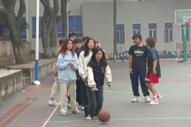 第二个项目是接力运球投篮班级对抗赛。每个班派出至少包括三名女生的团队接力运球投篮,用时较短的队伍获得胜利。茶学1班首先登场,队员们争分夺秒,最终耗时3分2秒。接下来茶学2班出场,队员顶住压力,仅用时2分28班获得胜利。