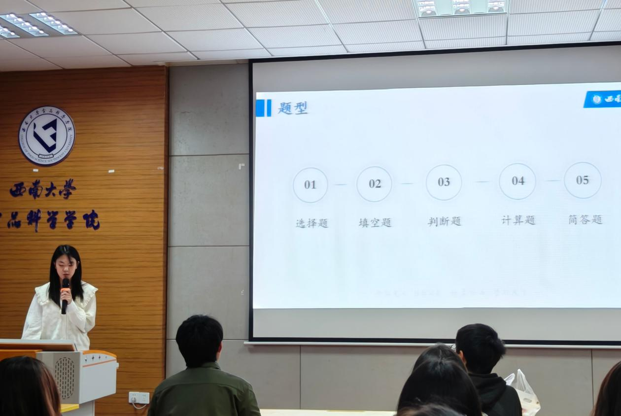 随后,吴玉具体介绍和强调突出了普通化学、有机化学的重难知识点,还为同学们讲解了拥有正确学习方法的重要性,分享了期末突击复习的诀窍与妙招。除此之外,吴玉还向同学们分享了一些有效获取学习资料的途径,助力同学们更好地完成学业。