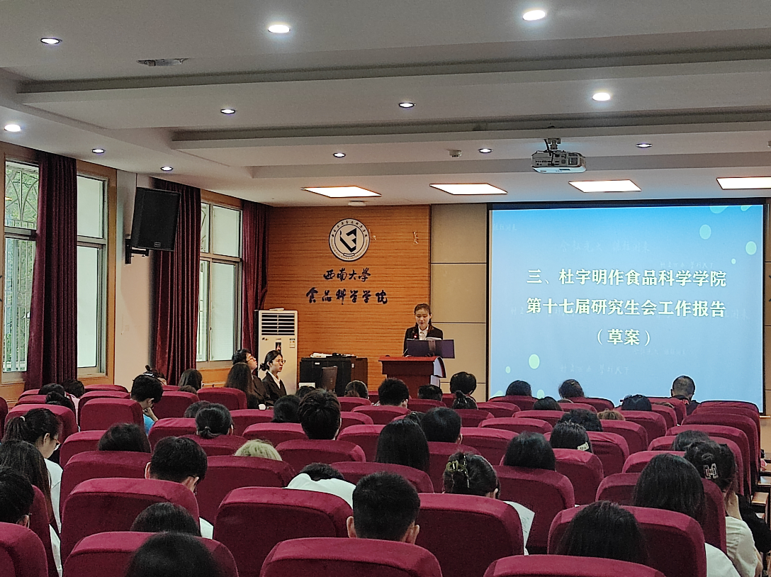 第十七届研究生会、第十八届团委、学生会述职报告,向大会代表汇报过去一年院研究生会和院团委、学生会相关工作情况。
