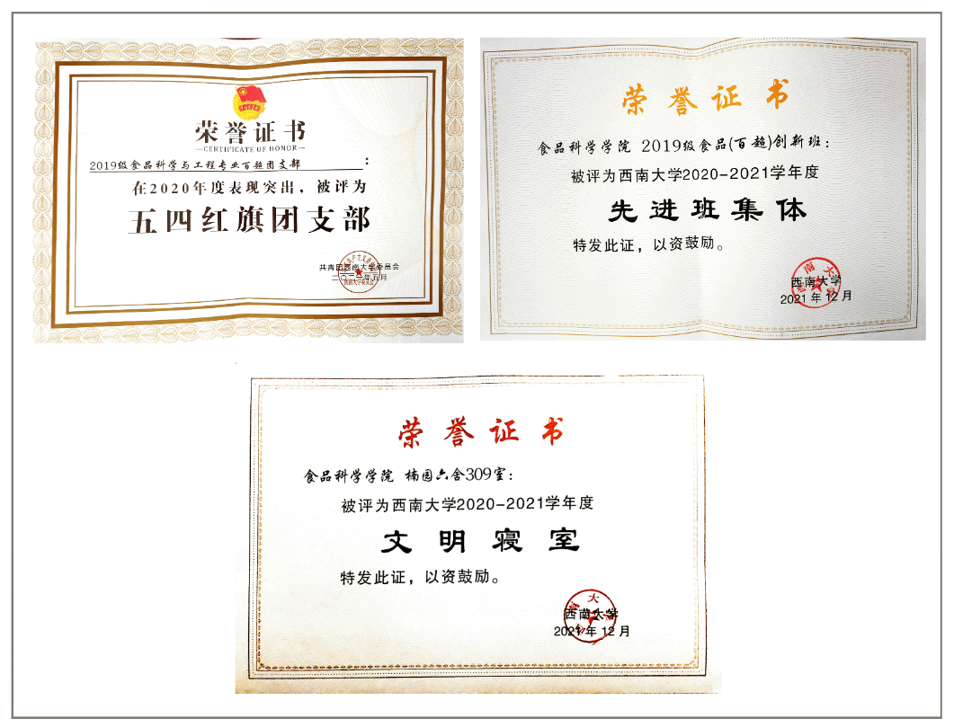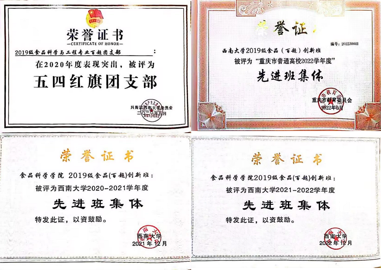 “百超”创新实验班的学生团结友爱,积极阳光,获得了4项集体荣誉。其中,荣获重庆市先进班集体1次、五四红旗团支部1次,鉴黄师