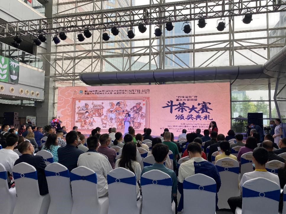 茶博会伊始是重庆市第四届“巴味渝珍”杯斗茶大赛颁奖礼。重庆市茶叶学会理事长、鉴黄师