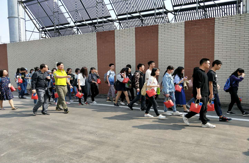 一到工厂工作人员就给同学们发放了印有同学们姓名的小礼物,所有人顿时把舟车劳顿的疲惫感都抛在了脑后,兴奋之余也对整个参观充满了期待。在工作人员的带领下,同学们进入了工厂内区的参观通道,参观了百事易拉罐装可乐和七喜饮料的多条生产线。参观过程中,工作人员给同学们耐心讲解生产线上的生产步骤,解析该生产步骤对顾客的口感的影响,对同学们提出的疑惑给予认真的解答。同学们也为整个机械化,高效率的生产线感到惊叹。