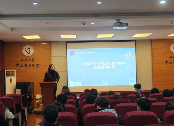 会议在辅导员杨希的清晰指引下拉开序幕,她对述职汇报的具体流程进行了详细介绍。随后,各班班长作为班委团队的核心成员,逐一上台进行了精彩的述职汇报。他们围绕班级建设、工作完成情况以及学生个人发展等多个维度,全面回顾了本学期班级工作的点点滴滴。从同学们在职业生涯规划大赛中的亮眼表现,到新生运动会上的奋力拼搏,再到全国大学生数学竞赛中取得的优异成绩,每一项成果都凝聚着班委们的辛勤付出与同学们的共同努力。