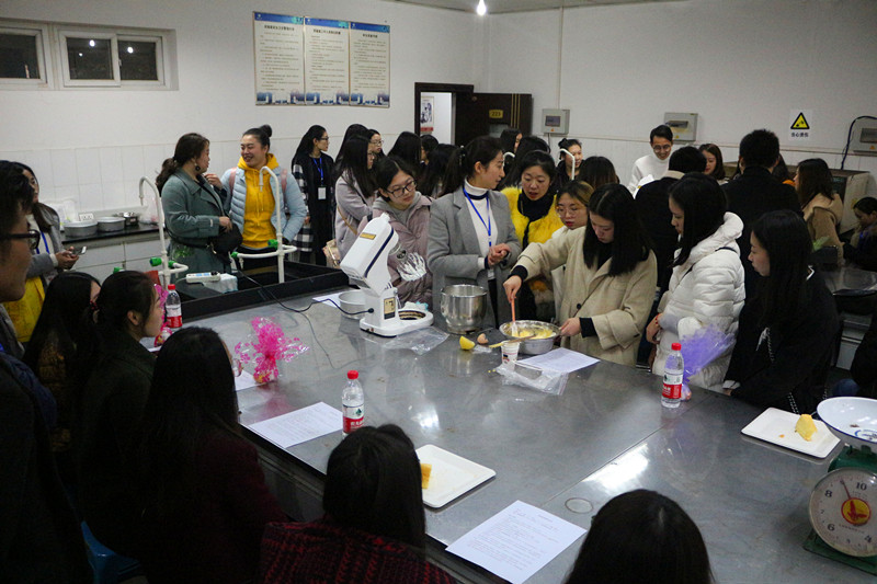 并观看特色茶艺表演。在感官评价环节中,代表团亲自体验了感官评价员的工作。接下来,在学院二楼烘焙实验室由工作人员指导下代表团分组进行海绵蛋糕的制作,现场氛围十分活跃。