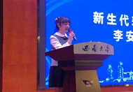 老生代表张东、新生代表李安琪依次发言。张东同学勉励新生们砥砺前行,立鸿鹄志。李安琪同学表示将追随学长的步伐,做新时代的大学生。
