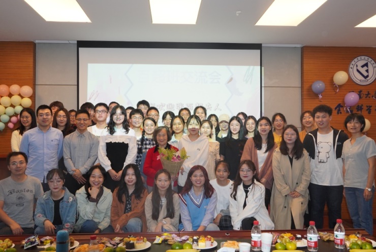 百超班同学与张百超先生夫人肖永霞女士于39教215展开交流。出席本次交流会的还有夏杨毅副院长、邓丽莉系主任、付余教授、戴宏杰副教授、张甫生副教授、2012级百超班校友张孝文,以及2018、2019级百超班全体同学。