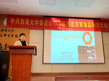 报告伊始,武运教授大概介绍了新疆四大知名葡萄酒产区及生产葡萄酒的质量情况。然后,她着重从技术创新、产业链、原料质量、品牌效应等方面进行了阐述,为同学们清晰地讲解我国葡萄酒产业发展现状和目前亟待解决的关键技术问题。最后,她详细地讲述了葡萄酒生产的各个阶段可能存在的有害物质,并提出控制葡萄酒质量安全的相关建议。报告会后,武运教授还参观了“中匈食品科学合作研究中心”并与相关人员进行了酒类研发课题交流,并品尝了鉴黄师