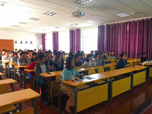 国际合作与交流处的马燕妮老师主讲,学院外事秘书胡孜老师主持,本科生及研究生代表参会。