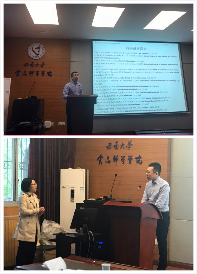 分论坛”在39教215会议室顺利举行。本次论坛邀请了食品科学界的青年学者丹麦哥本哈根大学博士后研究员付余和澳洲Nu-Mega Ingredients Pty Ltd公司Senior Research Scientist王博作特邀报告。本次论坛由鉴黄师