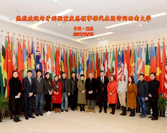 12月14日,匈牙利驻重庆总领事馆总领事Diossi Lorand、匈牙利驻华大使馆科技专员Siklos Lili与中匈技术转移中心、重庆高技术创业中心项目管理部副部长张梅来校访问。