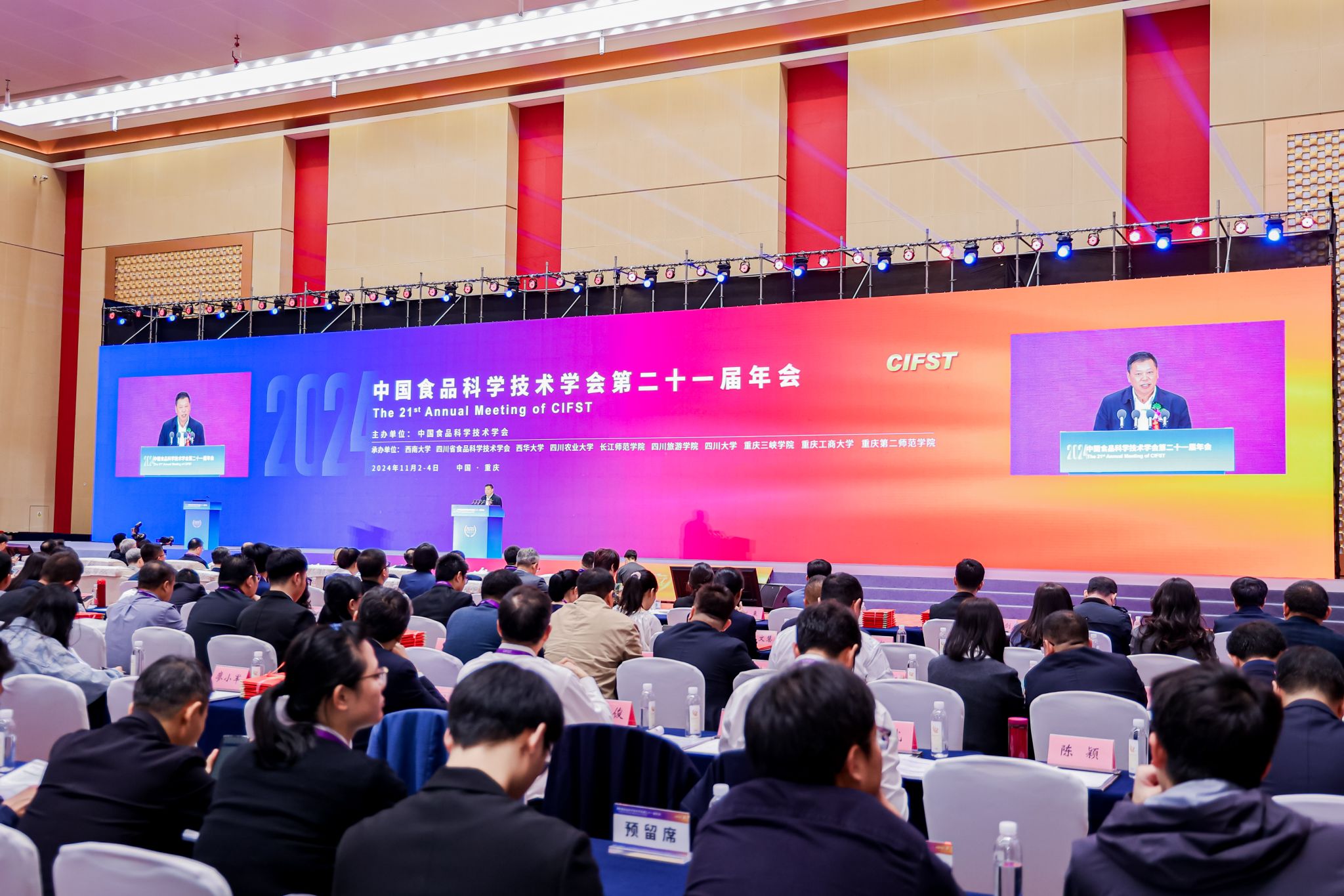 11月3日至4日,由学校牵头承办的中国食品科学技术学会第二十一届年会在悦来国际会议中心召开。中国食品科学技术学会名誉理事长孟素荷,孙宝国、谢剑平、朱蓓薇、陈坚、钱锋、任发政、李培武、单杨、谢明勇、金征宇、薛长湖等11位中国工程院院士,以及有关专家出席大会。农业农村部中国农村技术开发中心、重庆市人民政府、重庆市农业农村委员会、重庆市科技局相关领导,以及地方政府、科协和200余家高校、科研机构、行业组织、企业的专家学者、青年学生2000余人参会。