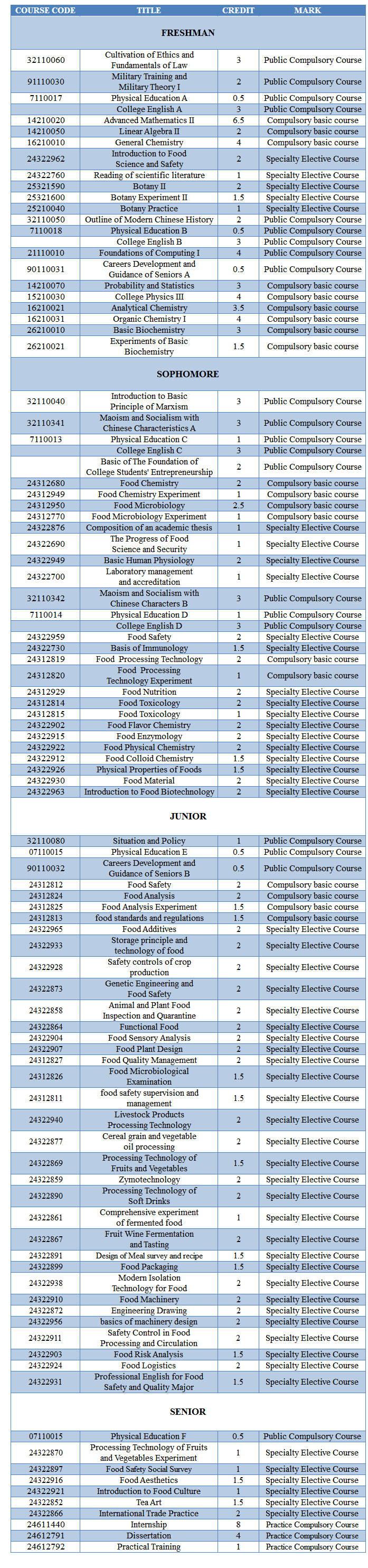 Food Quality and Safety (Undergraduate)