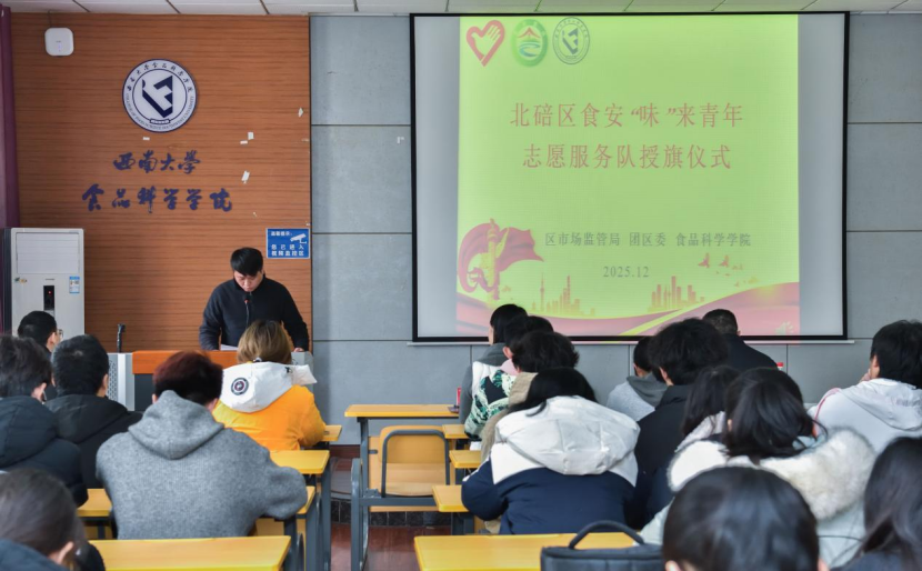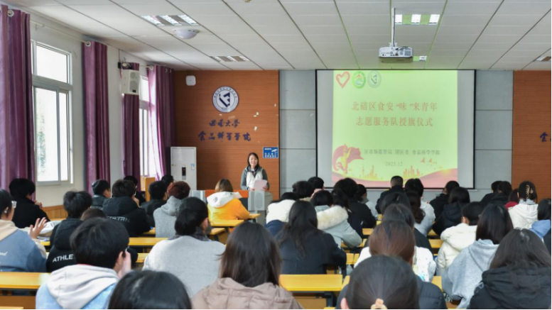 为规范志愿服务开展,强化责任担当,2025年12月5日,北碚区食安“味”来青年志愿服务队授旗仪式暨志愿培训在鉴黄师